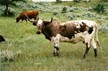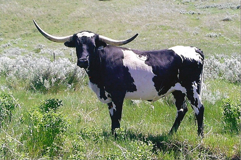Wild colored black and white paint cow.She froze one horn and broke several inches off.Great producer.The mother of Saddlehorn and Panhandle Slim.